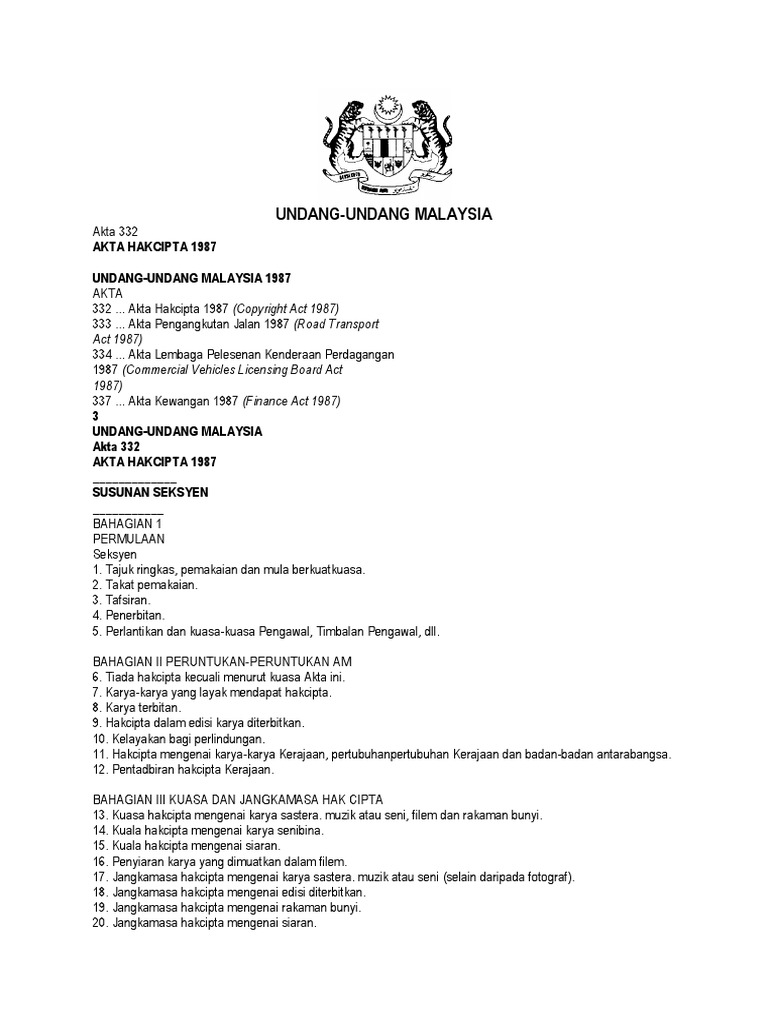 Akta Hakcipta 1987 Reprint 13 Akta 332 Pnmb2u